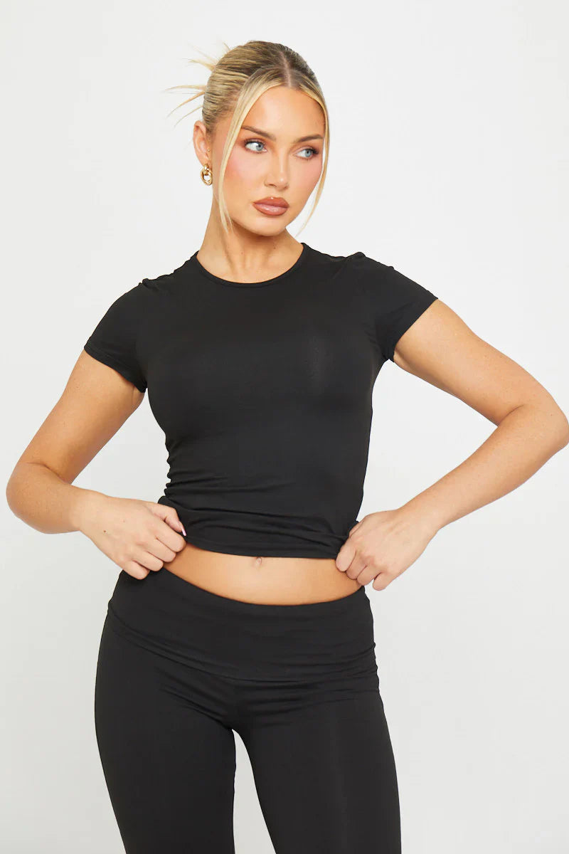 - Haut court à manches courtes : Idéal pour un style léger et aérien.